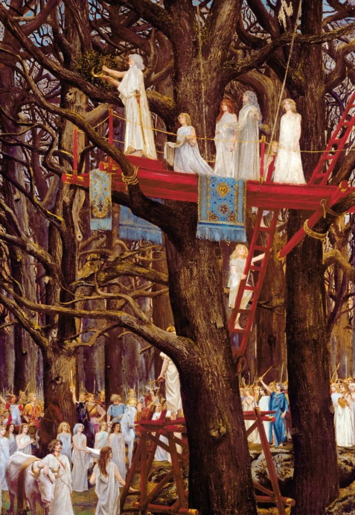 “[El muérdago] se recoge con mucha ceremonia, de ser posible en el sexto día de la luna… Eligen este día porque, aunque la luna aún no ha alcanzado la mitad de su tamaño, ya tiene una influencia considerable.”
